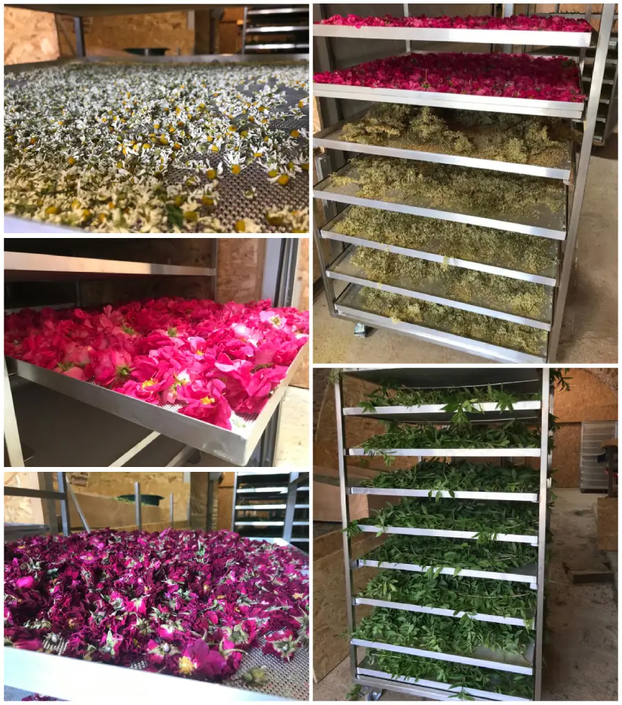 - Équipements d’herboriste pour faire des infusions, des tisanes, des sirops, des huiles essentielles de plantes ou de fleurs : armoire de séchage sur mesure, table inox de préparation…